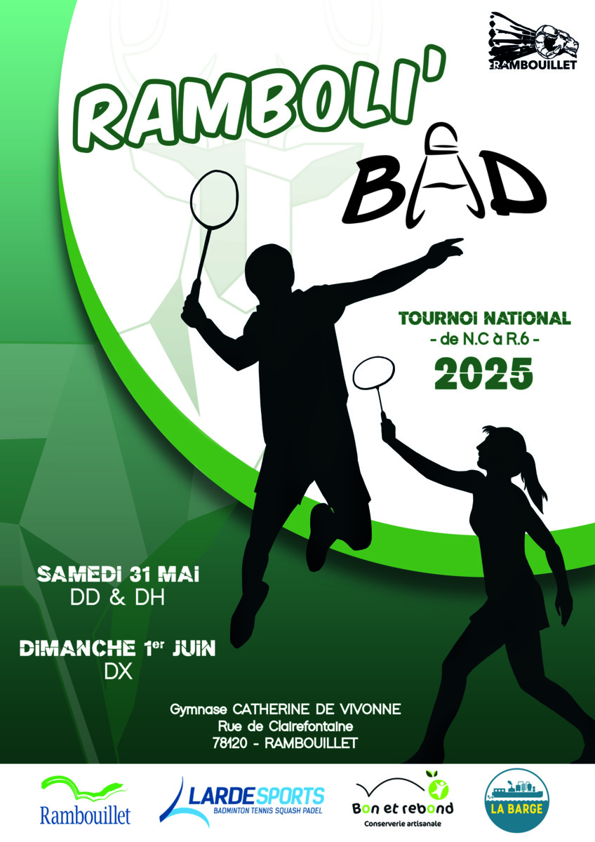 Le club de badminton de Rambouillet est heureux de vous inviter à son tournoi convivial qui se déroulera au Gymnase Catherine de Vivonne (Rue de Clairefontaine, 78120 Rambouillet).