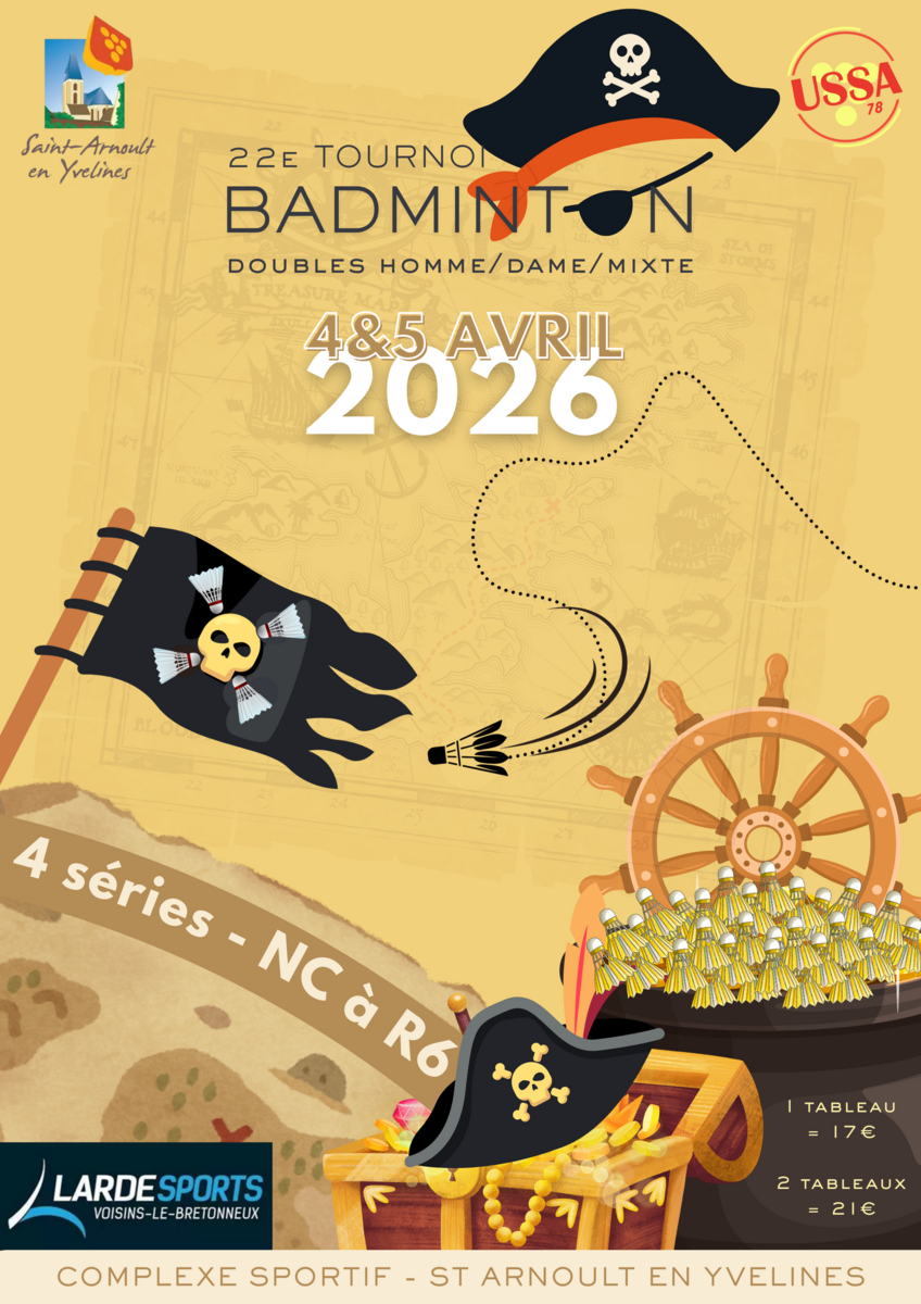📣 Le club USSA badminton de Saint Arnoult en Yvelines est heureux de vous inviter à son 22ème tournoi de double !! 🏸