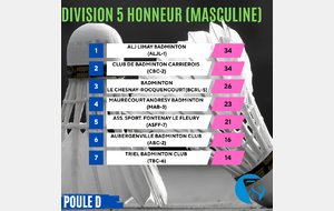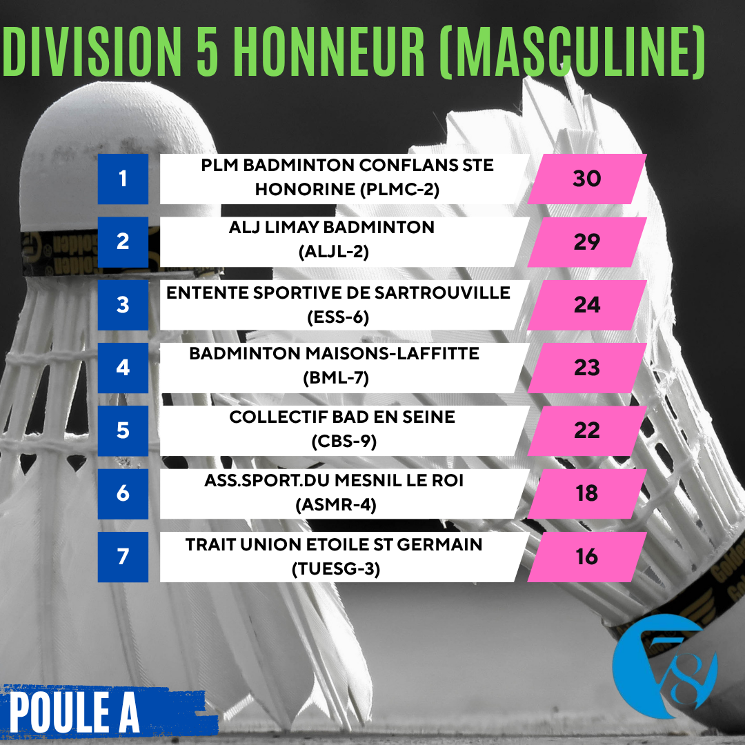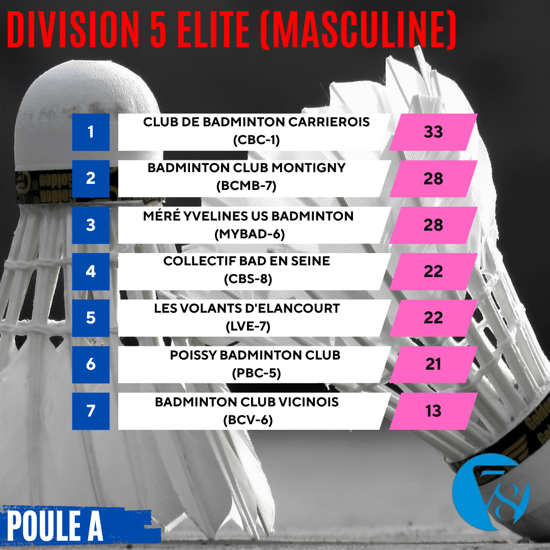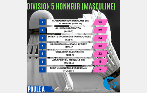 On commence aujourd’hui avec les résultats des interclubs masculins (D5), composés d’une poule Élite et de quatre poules Honneur.