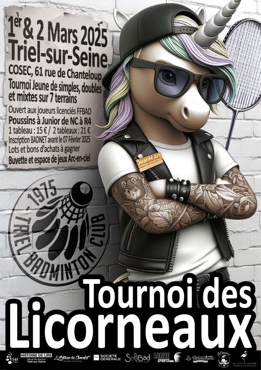 Le Triel Badminton Club sera ravi de vous accueillir pour son premier tournoi national jeune le 1er et 2 Mars 2025, qui s’adresse aux jeunes des catégories Poussin, Benjamin, Minime, Cadet et Junior.