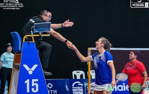 Dès notre arrivée, nous avons eu la chance de pouvoir aller tester la salle en condition réelle. Les conditions n'étaient pas évidentes, du vent d'un côté et un volant ralenti de l'autre. Il a fallu essayer de s'adapter. Mon premier match se déroule de bon matin et je réussis à l'emporter en 3 sets contre une Indienne. Je pense que c'est celui-ci qui restera gravé dans ma mémoire, pour la joie ressentie au moment je place mon dernier volant pour la victoire. Je poursuis donc la compétition contre une Anglaise cette fois. Un bon démarrage me permet de prendre assez rapidement de l'avance dans le 1er set, que je remporte finalement de manière serrée. Mentalement, je réussis à gérer mon second set de manière à passer devant dans le money time et passer ce nouveau tour. Me voilà en huitièmes de finale contre une Malaysienne. Cette fois, la barre est trop haute et malgré un bon début de match, elle est plus forte et remporte facilement le match en 2 sets. L'expérience s'arrête donc là pour moi et je reprends ma casquette de supportrice pour les joueurs Français encore en lice.